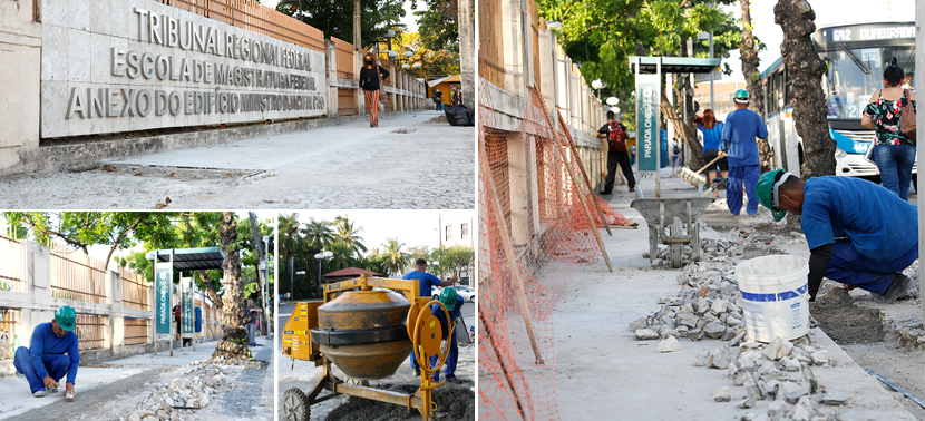 Dando continuidade às ações de inclusão, com a execução de projetos que visam a aprimorar a acessibilidade de suas instalações, o Tribunal Regional Federal da 5ª Região – TRF5 iniciou mais um serviço de reforma da calçada, desta vez, na Escola de Magistratura Federal da 5ª Região (Esmafe). As adaptações serão realizadas na área que vai da Polícia Federal até a Avenida Rio Branco, compreendendo uma extensão de quase 200 metros.