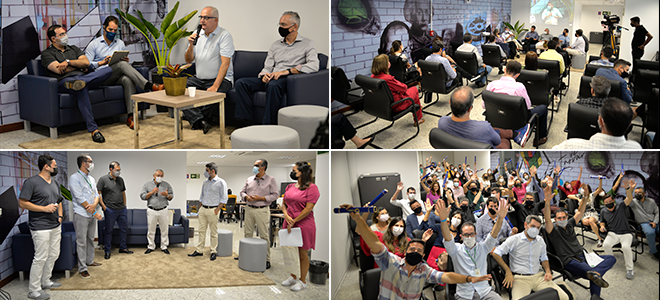 Sempre apostando na interatividade, o magistrado também anunciou o lançamento do “Inovexado”, o laboratório de inovação do TRF5, que deverá entrar em funcionamento a partir de fevereiro de 2022. Os espectadores que acompanhavam o evento de forma remota puderam, também, escolher a logomarca do laboratório, desenvolvida pela equipe de Editoração da Divisão de Comunicação Social do TRF5.
