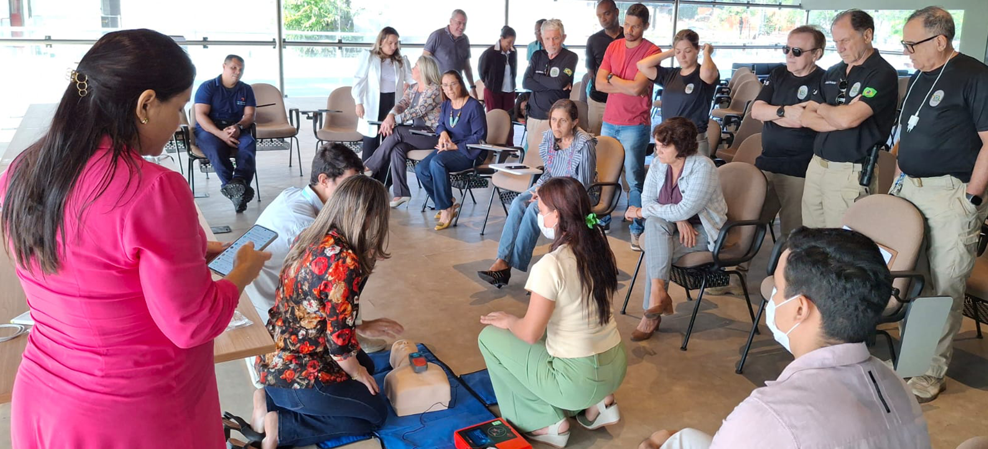 O Tribunal, que já possuía um aparelho no Núcleo de Assistência à Saúde (NAS), acaba de adquirir um novo desfibrilador mais moderno. O responsável pelo treinamento foi o enfermeiro Mateus Brito, representante da empresa fornecedora do produto. Ele explicou que a ideia do equipamento é ser simples, prático, leve, fácil de ser manuseado e intuitivo. “Com apenas um botão é possível ligar, desligar e efetuar o choque. A chance de erro com esse equipamento diminui drasticamente. Diferentemente do que muitas pessoas pensam, esse não é um equipamento para ser usado apenas por médicos(as), mas por qualquer pessoa, mesmo com o mínimo de treinamento”, destacou Brito.
