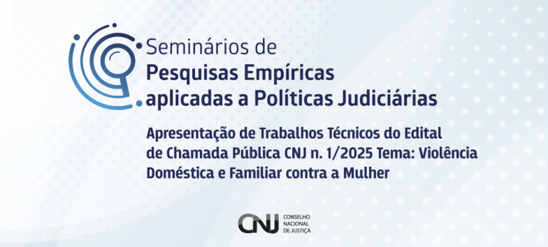 O Departamento de Pesquisas Judiciárias do Conselho Nacional de Justiça (CNJ) realiza, no dia 12/03, a Apresentação de Trabalhos Técnicos do Edital de Chamada Pública CNJ n. 1/2025 Tema: Violência Doméstica e Familiar contra a Mulher. O evento ocorre das 17h às 19h por meio da plataforma virtual Cisco Webex, com transmissão pelo canal do CNJ no Youtube.